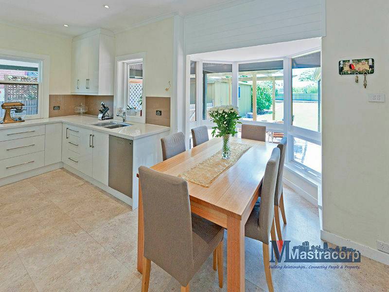 The hub of the home lies within the light-filled kitchen and dining area, freshly renovated in timeless neutral colours and tones with Caesar-stone bench top, glass splashback, white laminate soft-close cupboards and quality stainless steel appliances. Dining with glass backdrop views of the outdoor entertaining area and the largest stretch of manicured lawn you can imagine plus a boundary with nutrient-rich soil perfect for you to add to the existing fruit and veg garden. With such a deep backyard, it's hard not to be swayed by the possibility of a tennis court or pool. But for now, let the children play and contemplate all the happy times ahead.