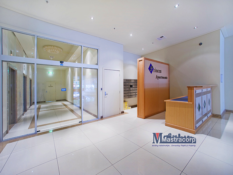 Spacious 1 bedroom plus study apartment in the Princes Apartment complex – in the heart of the Adelaide CBD within walking distance to Rundle Mall, King William Road, cafes, restaurants and public transport.