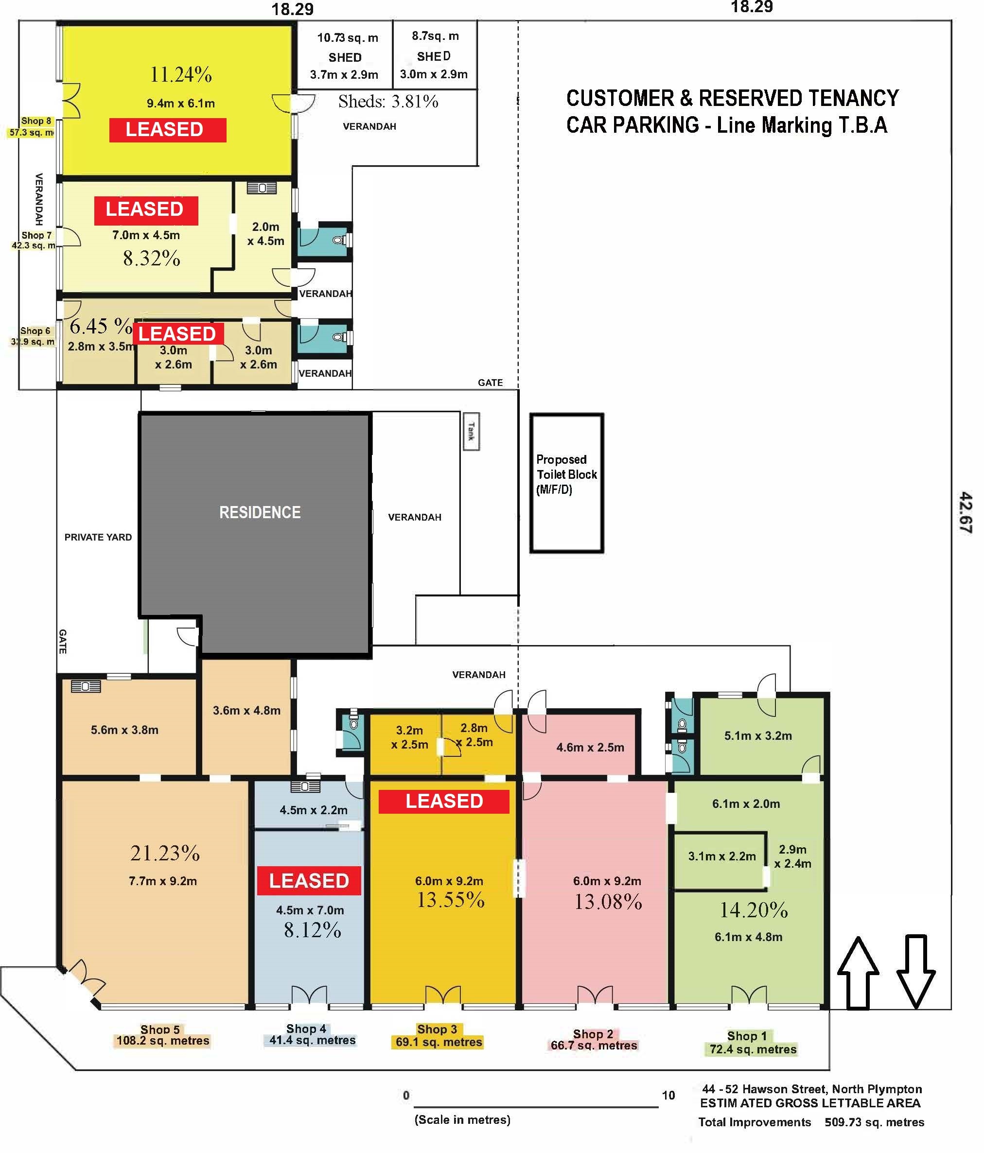 Shop 2 (66.7 sqm*): $15,000 - $17,000 p.a. + 13.08% of Outgoings