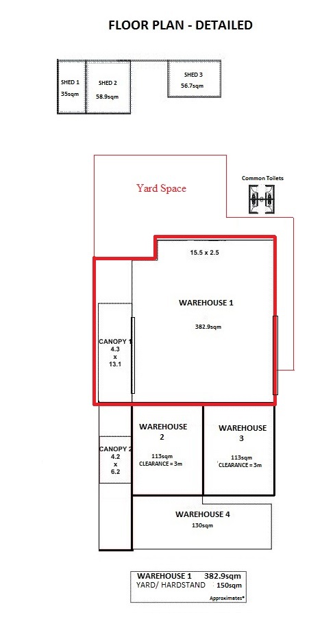 - 383sqm Warehouse with hardstand yard of 150sqm. (approx.)