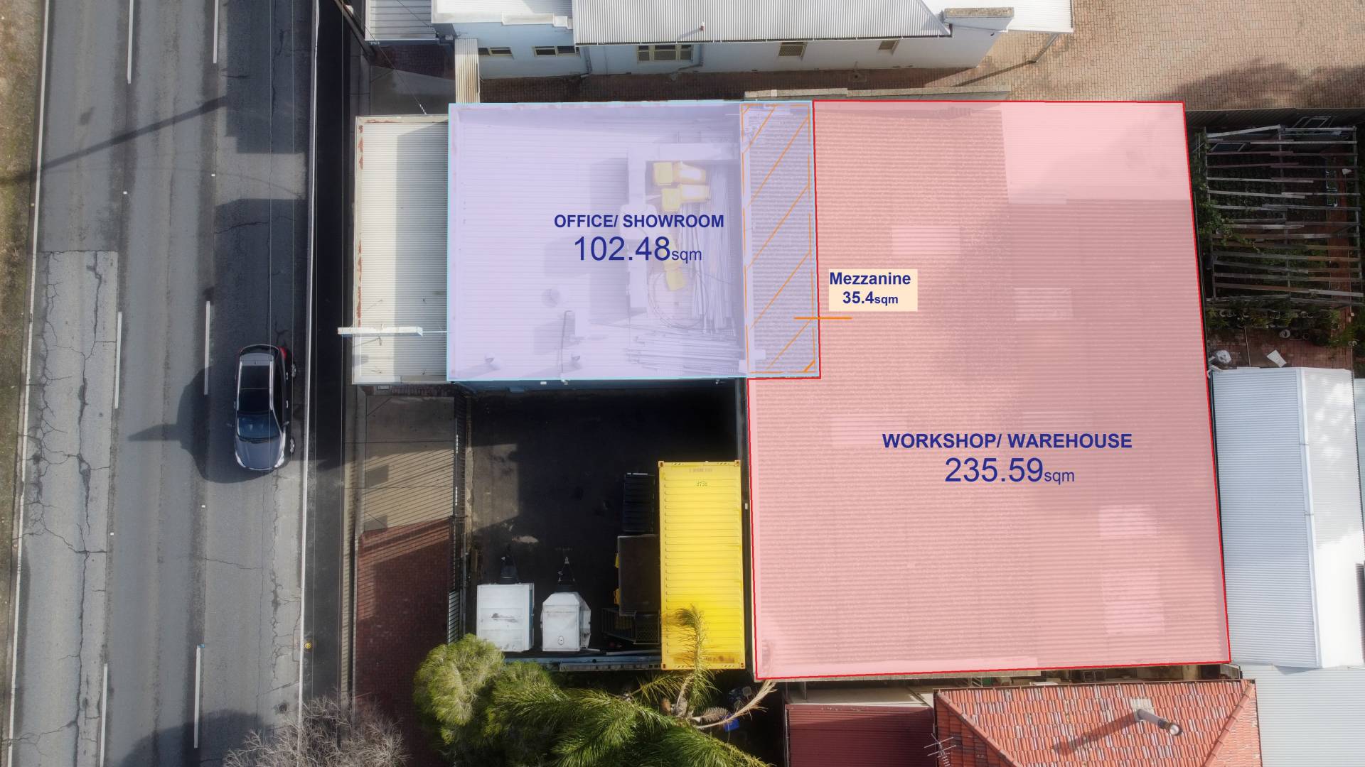 • 102.50 sqm* of Showroom/ Office with brand new ducted evaporative air-conditioning system and isolated split system in the front reception and waiting area.