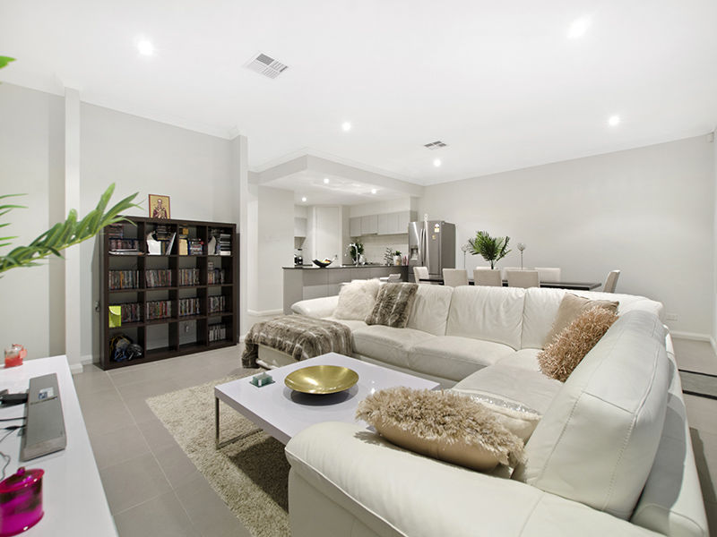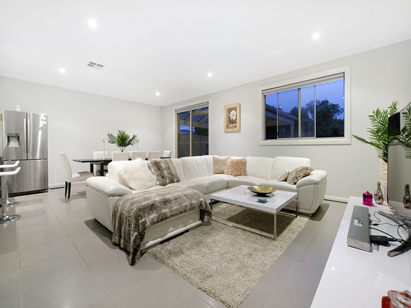 The central hub of the home is designed to create lasting memories - An open plan kitchen with Omega gas cook top, neatly tucked away butler's walk-in pantry and wrap-around bench top overlooks the spacious, light-filled living and dining area. Glass sliding doors lead out to an outdoor patio area with pergola and low maintenance backyard allowing for those small family gatherings and summer barbecues.